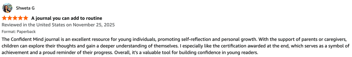 ๐ฆ โI got this cute confidence journal for my 6-year-old, and it's been such a positive experience. She actually looks forward to doing the activities each day, which says a lot!โ๏ธThe prompts are fun, interactive, and age-appropriateโperfect for helping her open up and express herself. I've noticed she's using more positive self-talk and showing a little more confidence when trying new things.๐ค One of my favorite parts of the journal is the "Grown-Upโs Note of Encouragement" pages."